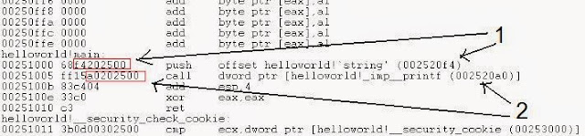 As you see above, the virtual addresses differ from the disassembled view in PEBrowserPro, due to the "Hello world!" program is loaded at 0x00250000.